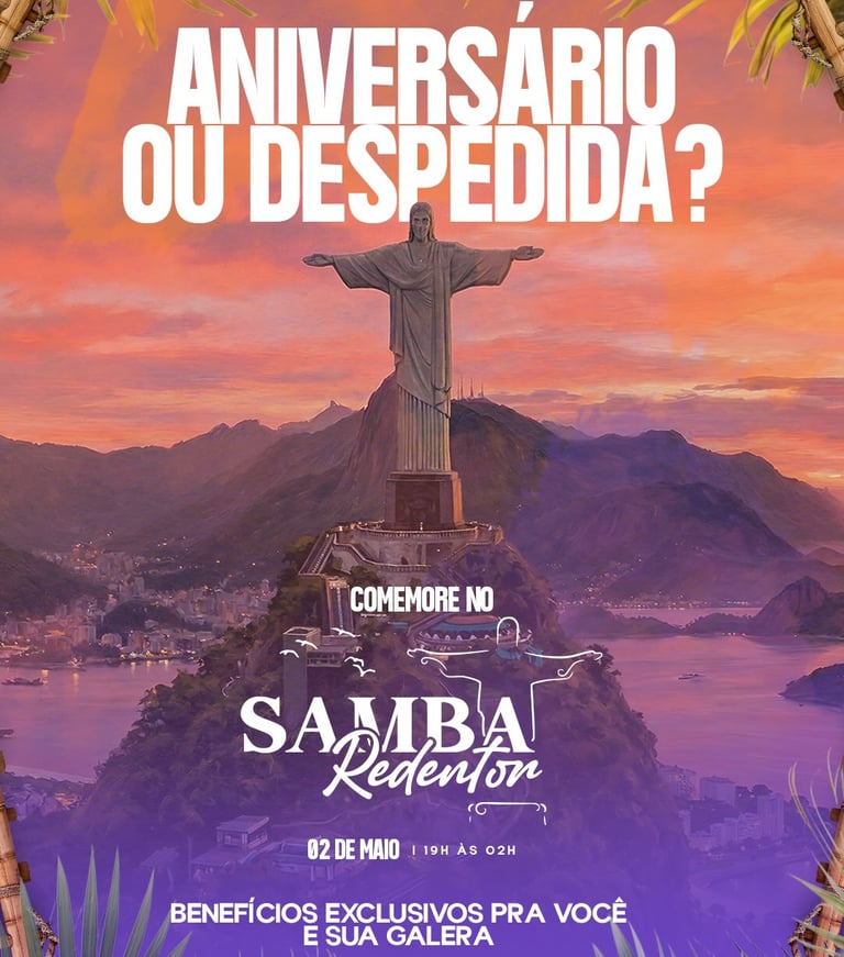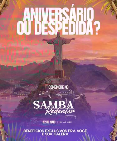 ANIVERSÁRIO OU DESPEDIDA NO SAMBA REDENTOR — DATA ÚNICA!